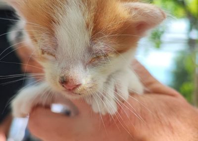 Der kleine Mythos wurde von lieben Urlaubern auf der Straße gefunden und sofort ins Herz geschlossen. Sie ließen ihn tierärztlich versorgen und beschlossen, ihn zu adoptieren. Da sie bald zurück nach Deutschland fliegen mussten, baten sie die Tierhilfe Sitochori e. V……………..